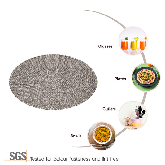 Set of 2: PVC Washable Placemats - Anti-Skid, Wrinkle Resistant | Round Table Mats | 15 Inches | Black & Cream