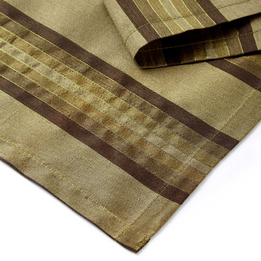 Table Runner, Poly-Silk Dupion with Fancy Stripes, 4 Seater Dining Table of Size (32x150 cm13 x59), Decorative Cloth for Party, Home, Cafes, Hotels - Washable - Coffee Stripes