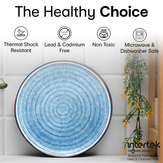 11" Maison Stoneware Dinner Plates | Set of 2 | Blue | Microwave safe, Dishwasher safe | Kitchen, Dining, Restaurants, Gifting | BPA Free
