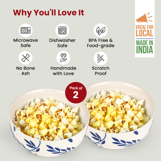 USHA SHRIRAM Ceramic Bowl for Snack & Dinner(2Pcs) | Ramen Soup Bowl Microwave Safe | Chip Resistant Dinnerware | Snack Serving Bowl | Dinning Bowl Katoris for Dinner | Serving Bowl Set | Pasta Bowl