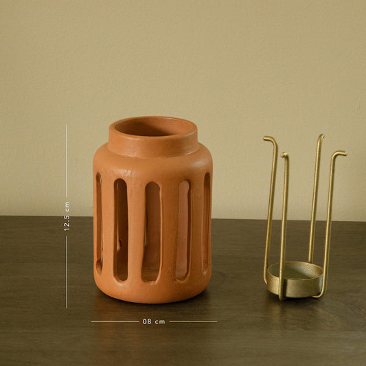 Lupa Round Terracotta Lantern (Small) | Tealight Holder for Indoor, Outdoor and Garden | Hanging Lantern for Home Decoration | Any Occasion Decoration Items for Home Decor