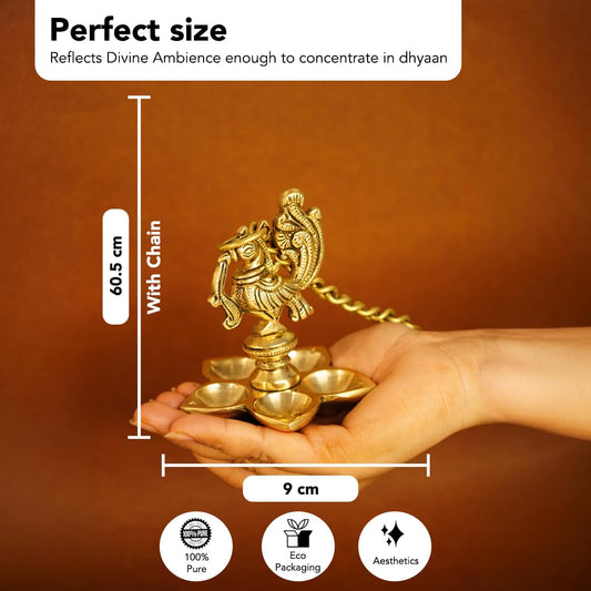 100% Pure Brass Peacock Hanging Diya for Puja | Diyas for Home Decoration | Pital Deepam for Pooja | Brass Oil Lamps | Agal Vilakku for Pooja | Puja Diya for Home Mandir | Deepak Kundulu