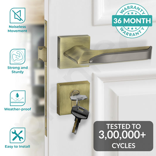 Heavy Duty Door Lock - Main Door Lock Set with 3 Keys/Mortise Door Lock for Home/Office/Hotel (7082 - Brass Antique/Satin Black Matt)