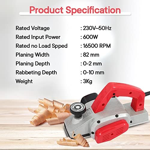 600W 16,000 RPM Electric Wood Planer (82 mm, Blue) + 5 Meter Extension 2 Pin Cord Upto 1000W