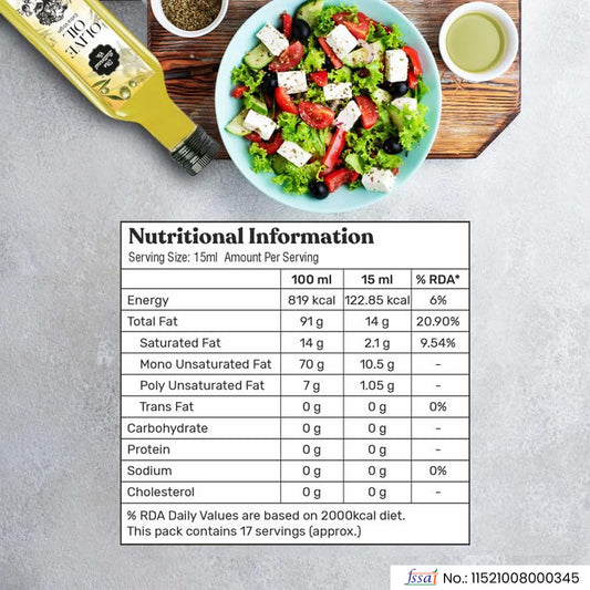 Cold Pressed Extra Virgin Olive Oil, Premium Cooking Oil, Perfect for Frying, Dressing, Garnishing & Drizzling on Salads, Good for Digestion and Heart, Daily Use, 250ml (Pack of 1)