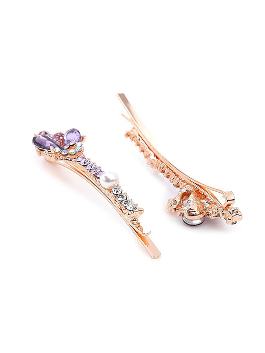 Hair Clips for Women Girls Barrette Hair Clips for Women Hair Accessories for Women Floral Clips for Women Purple Crystal French Barrette Hair Clips for Women and Girls Gift For Women & Girls