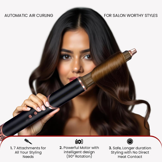 MakeMeeBold 7-IN-1 Multi Air Styler | 110,000 RPM High-Speed Brushless Motor | Auto-Clean Tech | Hair Dryer with Diffuser & Volumizer Brush | Aircurl Hair Styler for Women | Anti-Frizz & Ionic Hair Styling Tool