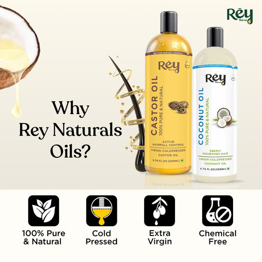 Cold Pressed Castor & Virgin Coconut Hair Oil | For Hair Growth, Hairfall Control, Nail Cuticles, Eyebrow & Eyelashes Nourishment | Hydrates & Moisturize Scalp | For Men & Women -200ML*2
