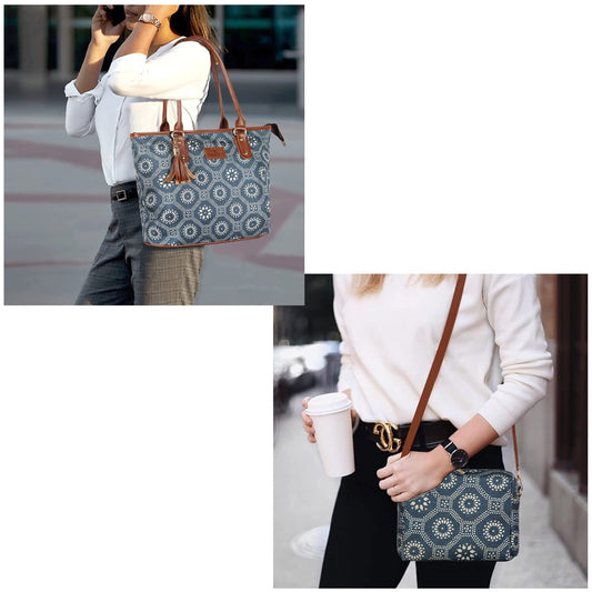 THE CLOWNFISH Combo Of Percy Printed Handicraft Fabric Handbag for Women Isla Printed Handicraft Fabric Crossbody Sling bag for Women (Lead Grey)