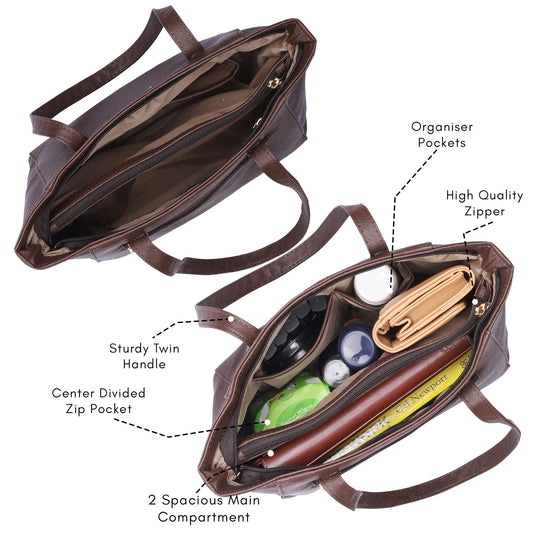 THE CLOWNFISH Valentine Faux Leather Handbag for Women Office Bag Ladies Shoulder Bag Tote for Women College Girls (Chocolate Brown)