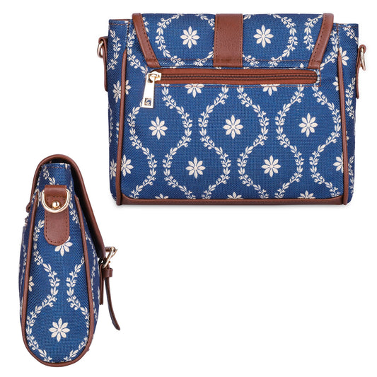 THE CLOWNFISH Lorna Tapestry Fabric & Faux Leather Handbag Sling Bag for Women Office Bag Ladies Shoulder Bag Tote For Women College Girls (Blue-Spade)
