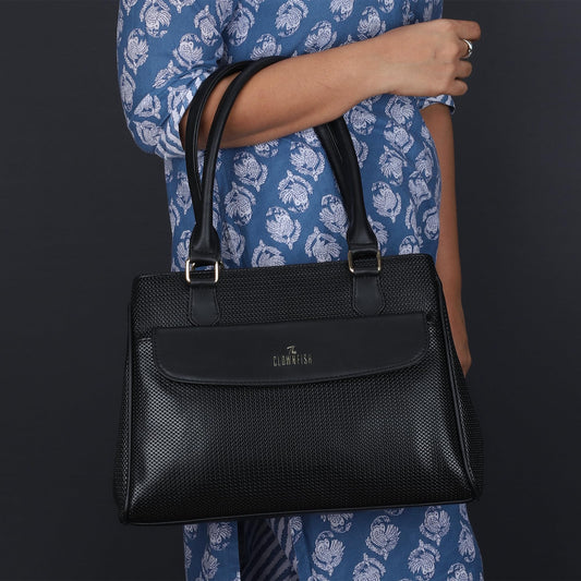 THE CLOWNFISH Aveline Collection Faux Leather Handbag for Women Office Bag Ladies Purse Shoulder Bag Tote For Women College Girls (Black)
