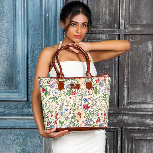 THE CLOWNFISH Lorna Tapestry Fabric & Faux Leather Handbag Sling Bag for Women Office Bag Ladies Shoulder Bag Tote For Women College Girls (Multicolour-Floral)