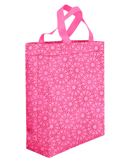 Non Woven Rectangular Flower Print Carry Bags with Handles - 12F26-KUBBMART016970 (Pink, 26 cm x 11 cm x 38 cm) - Pack of 12, Paper