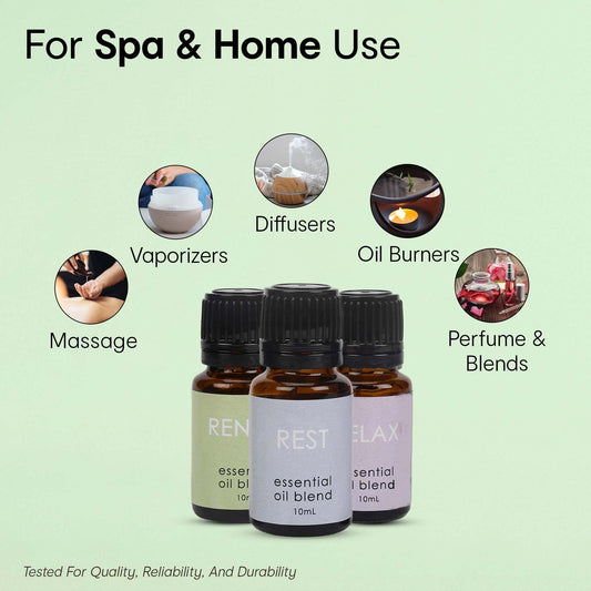 Combo: Essential Oil Set - Relax, Rest, Renew | 10ML Each | For Diffusers & Aromatherapy