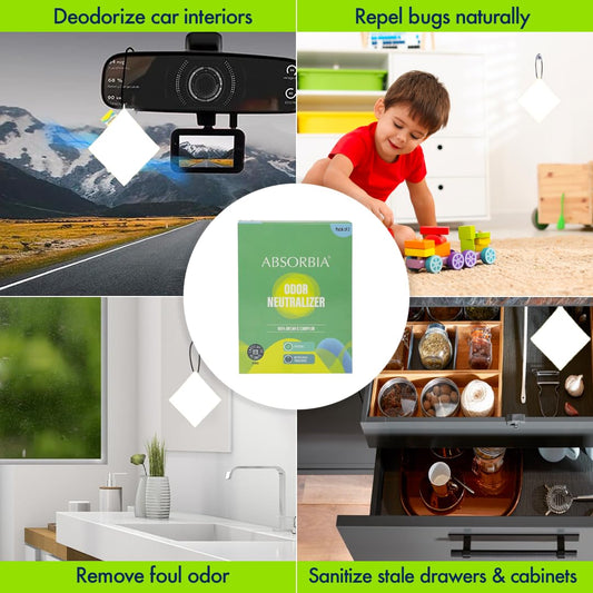 Moisture Absorber Sachet -Pack of 6 (200ml Each) | Dehumidier for Bags, Suitcases Drawers & Natural Camphor 20G X 3 | For cupboards and shoe closets | Air Freshener & Bug repellent