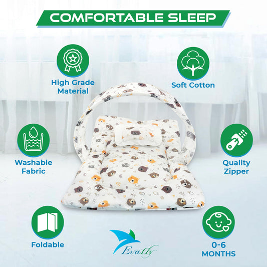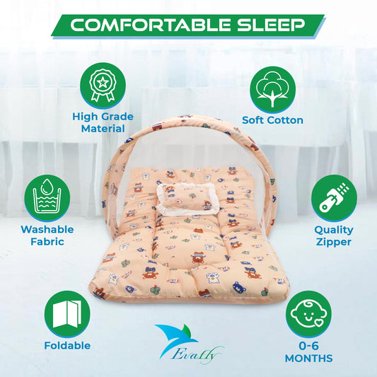 Baby Mosquito Net with Cotton Bed: Bear Print | 73x44cm | Cream