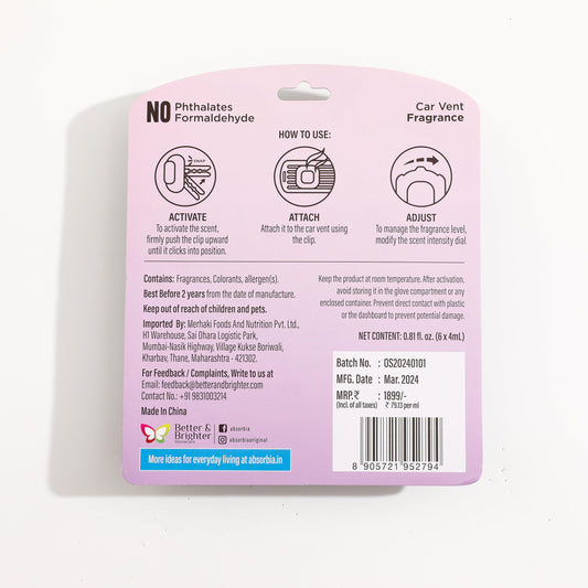 ABSORBIA Lavender Car Air Freshener Vent Clips, 6 Pack, 4ml Capacity Each, Purple & Black, Blister Pack