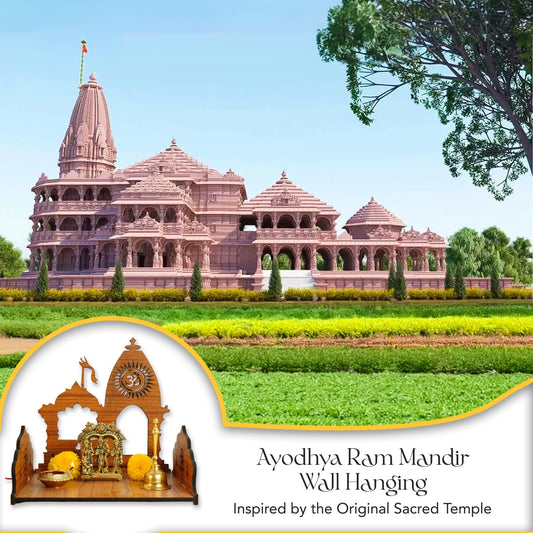 Ayodhya Ram Mandir Inspired Wooden Pooja Mandir for Home Wall Mounted | Wooden God Temple for Home | Pooja Stand for Home | Puja Mandir for Home | Pooja Unit for Home | Temple for Office