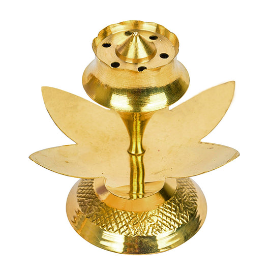 Kuber Industries Agarbatti Stand | Incense Sticks Holder | Brass Agarbatti Holder for Pooja Mandir | Agardan Stand for Mandir | Kamal Thali Incense Stand | Golden