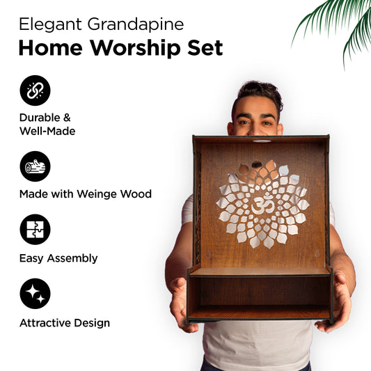 Pooja Mandir for Home | Wooden Om Temple for Home & Office | Lightweight | Easy to Assemble | Pooja Stand | Singhasan for God | Puja Mandir