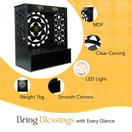 Wooden Pooja Mandir for Home Wall Mounted | Wooden God Temple for Home | Pooja Stand for Home | Puja Mandir for Home | Pooja Unit for Home with LED Spotlight | Temple for Office