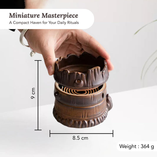 Ceramic Dhoop Dani Loban Burner Holder Stand for Home with Storage | Dhup Kapoor Dani for Puja | Sambrani Dhoop Holder | Dhuni Burner Samrani Dhoop Batti Stand for Pooja | Incense Oud Burner