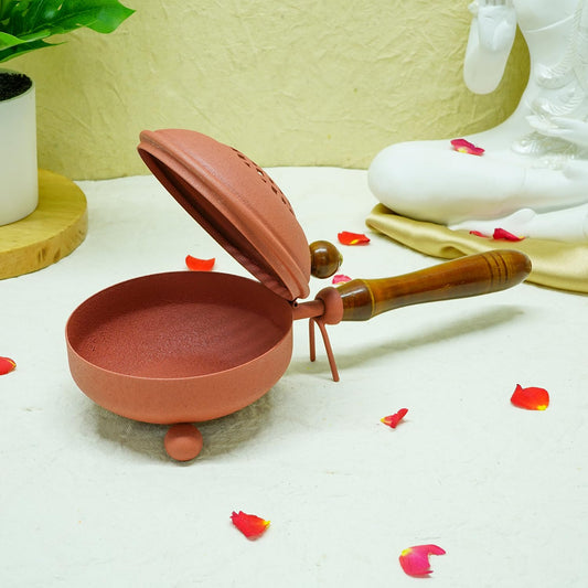 Metal Dhoop Dani Loban Burner Holder Stand for Home | Dhup Kapoor Dani for Puja with Wooden Holder | Sambrani Holder | Dhuni Burner Samrani Batti Stand for Pooja | Dhup Stand Incense Oud Burner