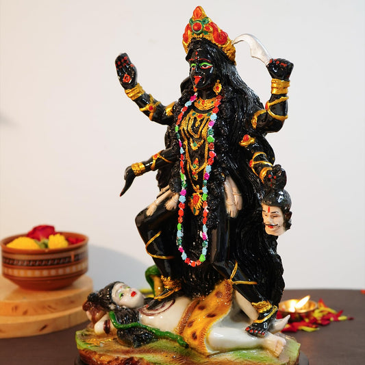 Aura Series Big Size Marble Dust Kaali Maa Idol (1 Feet) | Handpainted MATA Rani Murti for Home Decor, Puja | Resin Maa Kaali Goddess for Office Desk | Kali Durga MATA Murti for Gift