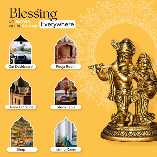 100% Pure Brass Radha Krishna Murti (Size: 12.8 cm) | Radha Krishna Statue | Radha Krishna Idol for Gift | Radhe Krishna ki Murti for Pooja Room | Radha Krishna Idol for Home Decor