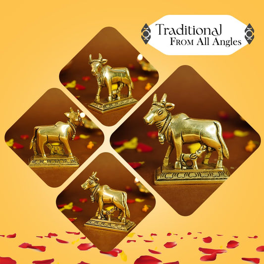 100% Pure Brass Kamdhenu Cow with Calf Vastu Idol | Komatha Cow with Calf Statue for Pooja | Kamdhenu Cow and Calf Statue Idols for Home Decor, Vastu, Feng Shui and Pooja Room