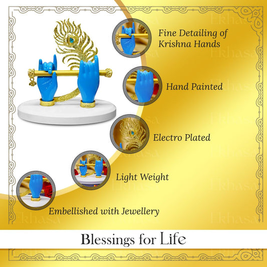 Lord Krishna Hands with Flute Idol (Small Size) | Krishna Flute Hand Statue | Krishnaji Divine Hands Idol with Flute and Peacock Feather | Krishna Statue for Car Dashboard & Griha Pravesh Gift