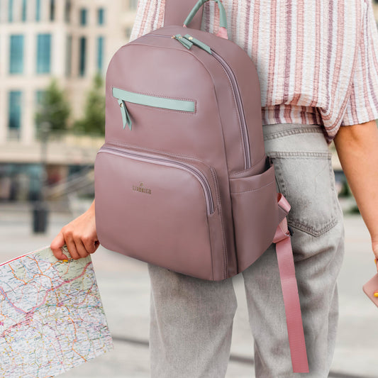 THE CLOWNFISH Women's Laptop Backpack | Vegan Leather Laptop Bag for Office, College, Travel | Fits 15.6 Inch Laptop | Stellar Collection - Chick Peach colour