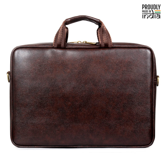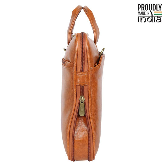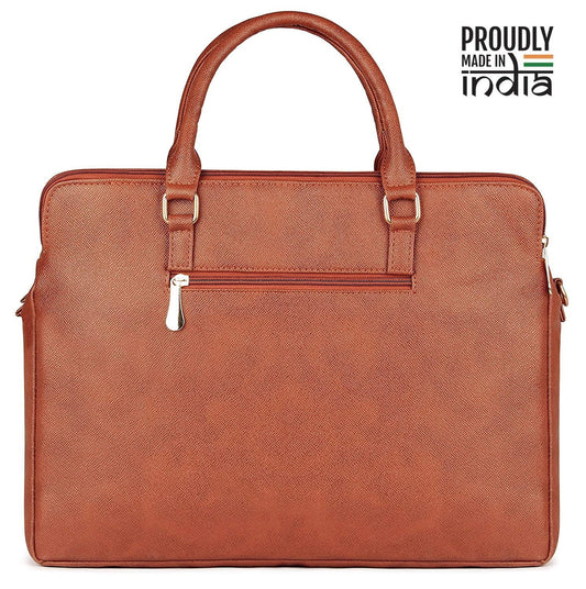 Elegant Laptop Bag - Water Resistant, Synthetic Leather | Adjustable Strap | Fits up to 15.6 inch | Brown