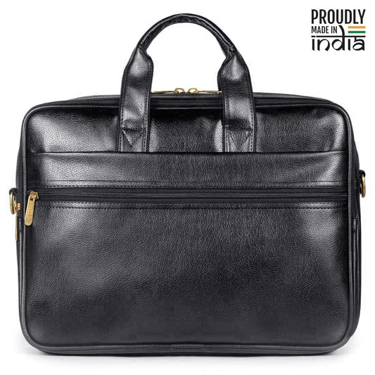THE CLOWNFISH Unisex-Adult 10 Litre Faux Leather 15.6 Inch Utility Laptop Messenger Bag Briefcase (Black)