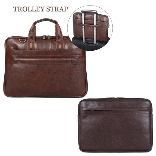 THE CLOWNFISH Combo Of 10 Ltrs Vegan Leather 14 inch Formal Laptop Briefcase (Dark Brown) Pascal Faux Leather14 inch Tablet Case Laptop Sleeve (Dark Brown)