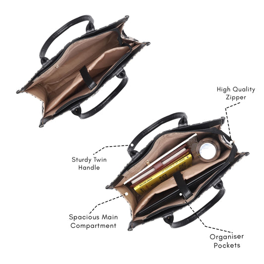 THE CLOWNFISH Opulence Series: Multipurpose Handbag with Padded Laptop Sleeve | 14 inch | Black-Wave Design