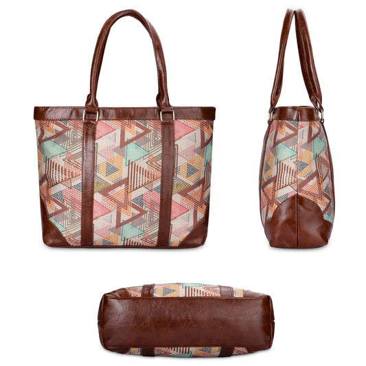 THE CLOWNFISH Miranda Series 15.6 inch Laptop Bag For Women Printed Handicraft Fabric & Faux Leather Office Bag Briefcase Hand Messenger bag Tote Shoulder Bag (Multicolour-Triangle)