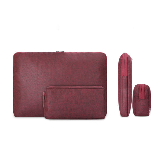 THE CLOWNFISH Unisex Adult Combo Of Algo Series Polyester 13 Inch Laptop Sleeve & Scholar Series Multipurpose Polyester Travel Pouch Pencil Case Toiletry Bag (Maroon)
