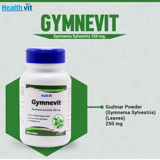 Gymnevit Gymnema Sylvestris 250mg | For Blood Sugar Management | Enhances Urine Secretion | For Weight Management | Vegan And Herbal Supplement | 60 Capsules