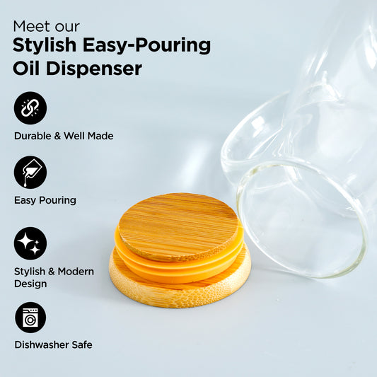 Glass Oil Dispenser with Leakproof Lid | Stylish & Functional | 500ml | Transparent
