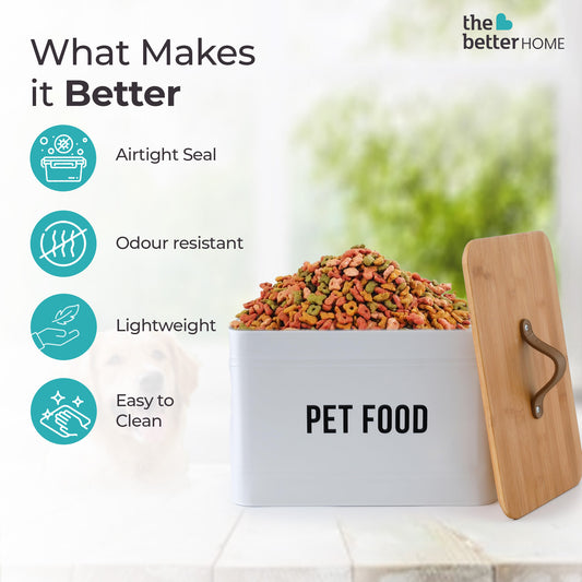 10L Pet Food Storage | Galvanized Metal Container | Bamboo Lid | Safe Pet Organization For Dog & Cat Food Storage