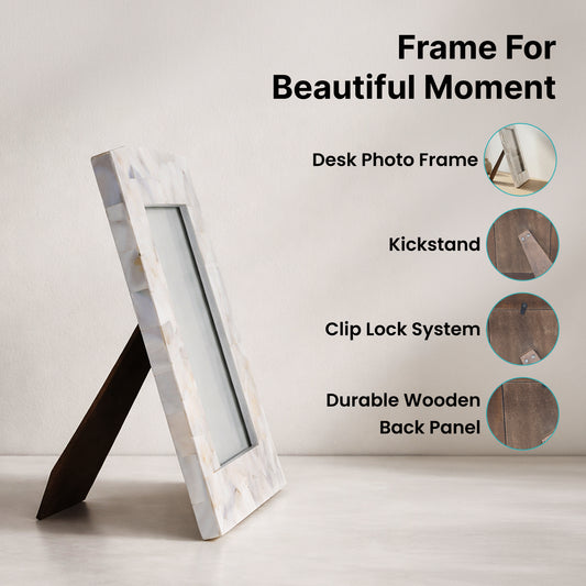 4x6 Inch White Mother of Pearl Photo Frame - Elegant Decorative Display