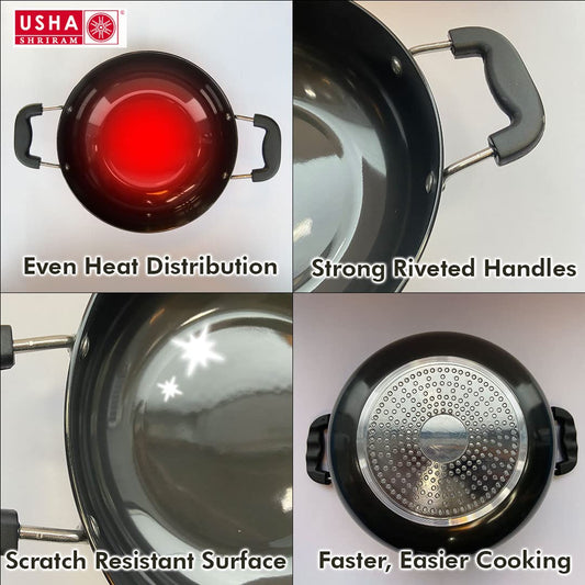 Non Stick Aluminium Kadai with Lid (4.4L) for Cooking | Hard Anodized Non Stick Kadai| Deep Base Kadhai | Riveted Bakelite Handle for Cool Grip | Frying Kadahi| Gas & Induction Cookware
