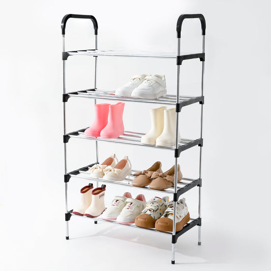 Homestic 5 Layer Shoe Rack | Footwear Holder | Shoe Storage Organizer Cabinet | Multi-Layer Adjustable shoe rack stand | Shoe Stand With Easy Assembly Sturdy Shoe Tower | Black & Silver