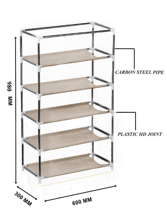 Kuber Industries Shoe Rack|Non-Woven 5 Shelves Shelf|Foldable Storage Rack Organizer for Shoe, Books (Black)