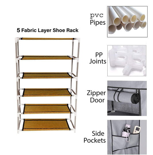 Kuber Industries Shoe Rack|Non-Woven 5 Shelves Shelf|Foldable Storage Rack Organizer for Shoe, Books (Grey)