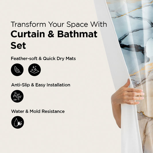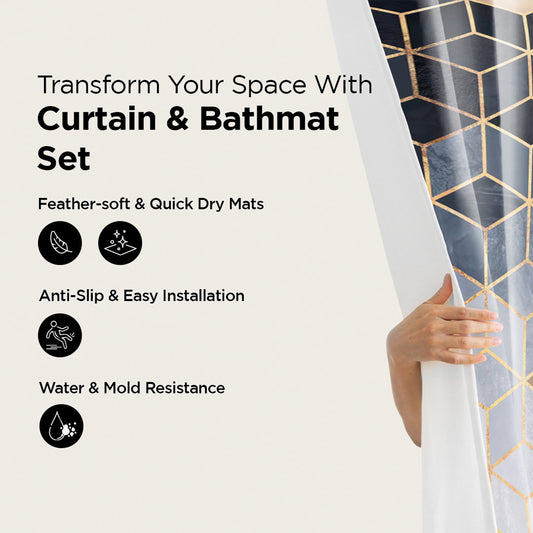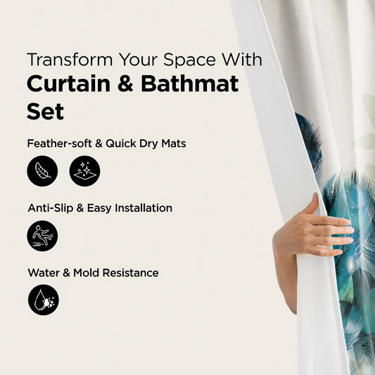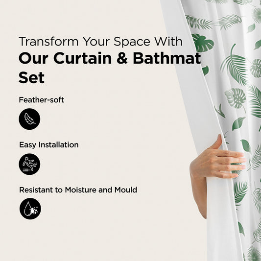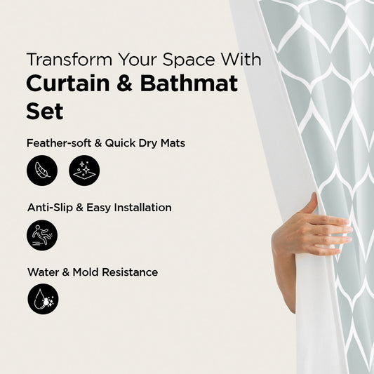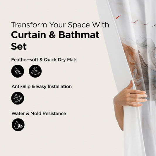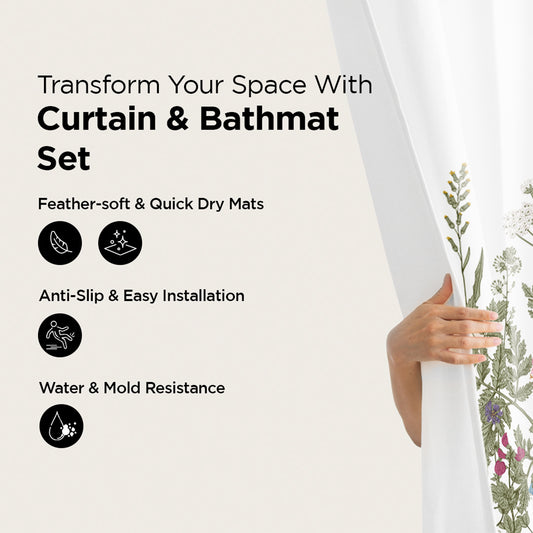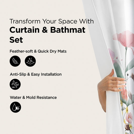 7 Feet Shower Curtain & 2 Pcs Bathmat I Anti Slip I Quick Dry I Waterproof I Easy-Slide Curtains I Bath Decor I Multicolour