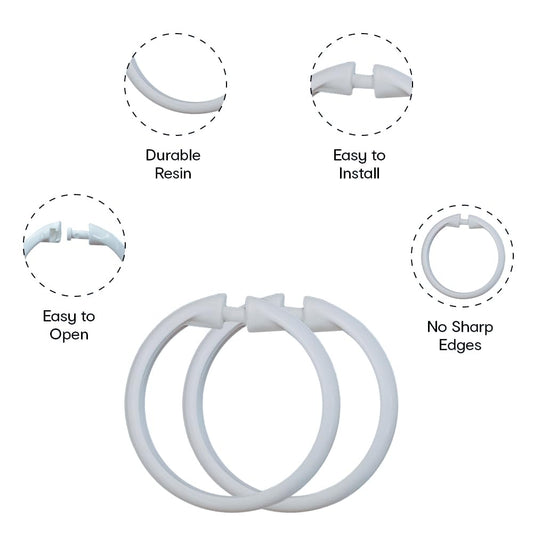 Set of 12 White Shower Curtain Rings | Plastic Shower Curtain Hooks | Rust Proof, Smooth Sliding Anti-Drop Loops for Rolling Shower Curtain, Bathroom | 6cm (Dia.) x 1cm (H)