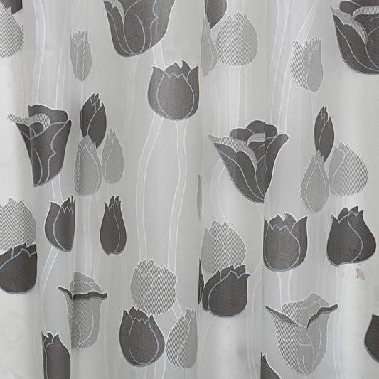 Microfibre Floral Shower Curtain with 8 Hooks, Standard, Grey
